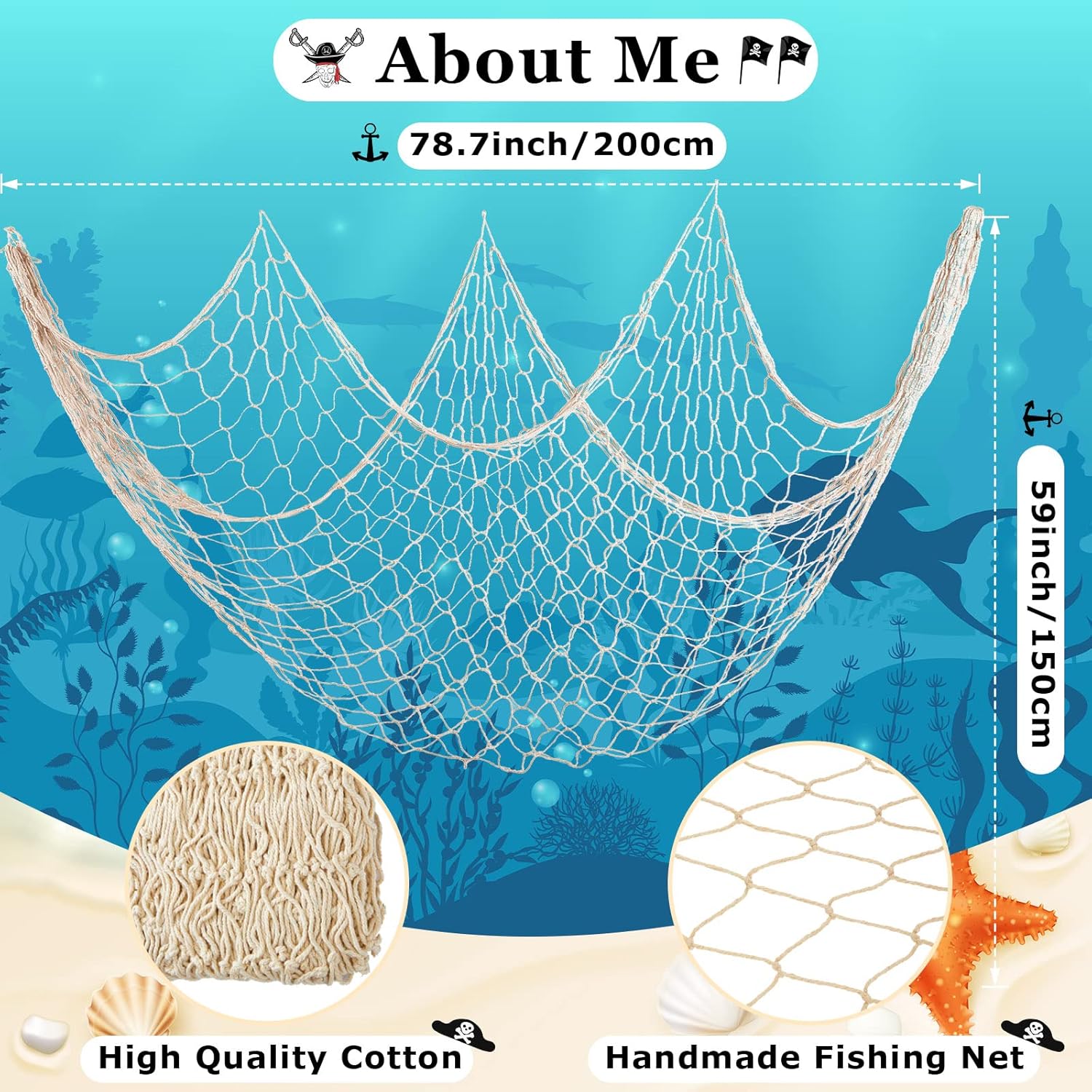 Introducing the Chumia 12 Pcs Fish Net Decorative Hanging Party Supplies – your ticket to transforming any space into a charming nautical paradise! Measuring 78.7 x 59 inches, this set of natural cotton fishnets is perfect for adding a touch of coastal flair to your Hawaiian luau, pirate-themed party, or fishing-inspired event.