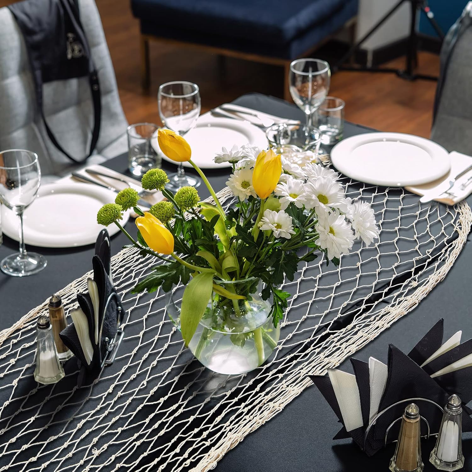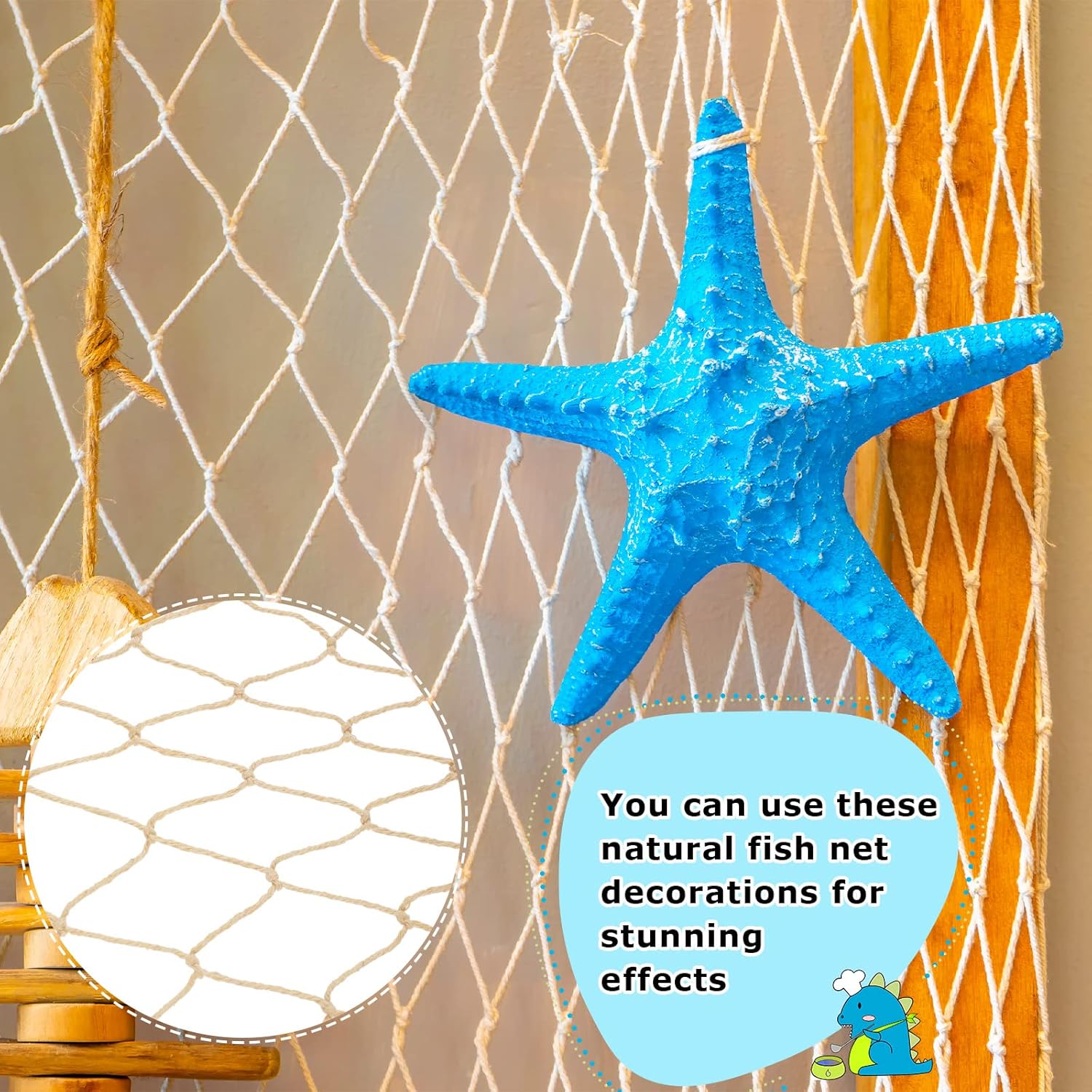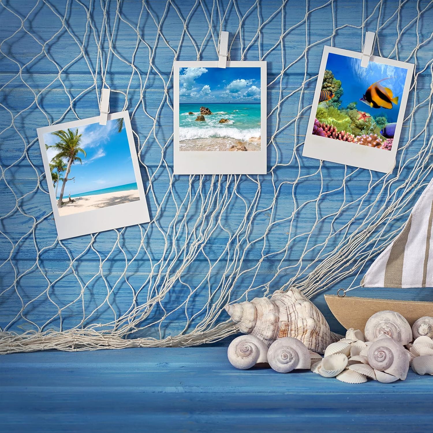 Crafted in a classic beige hue, these fish nets are versatile and can be used in a variety of creative ways. Hang them on walls, drape them over tables, or even use them as a backdrop for your photo booth – the possibilities are endless!